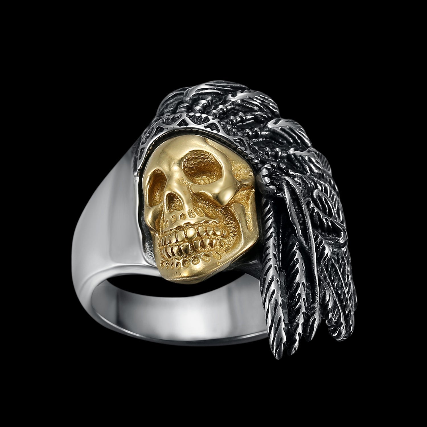 GOLDEN SKULL WARRIOR CHIEF RING