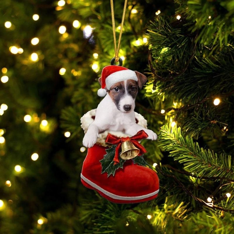 Smooth Fox Terrier In Santa Boot Christmas Hanging Ornament SB210