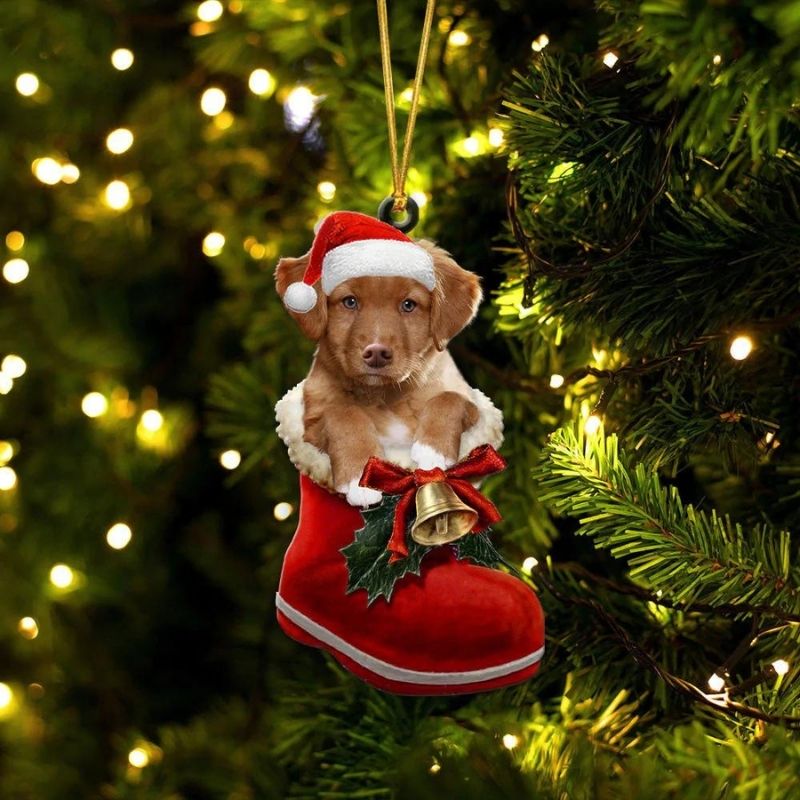 Nova Scotia Duck Tolling Retriever In Santa Boot Christmas Hanging Ornament SB164