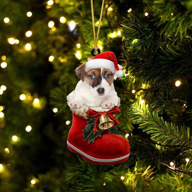 Jack Russell Terrier In Santa Boot Christmas Hanging Ornament SB085