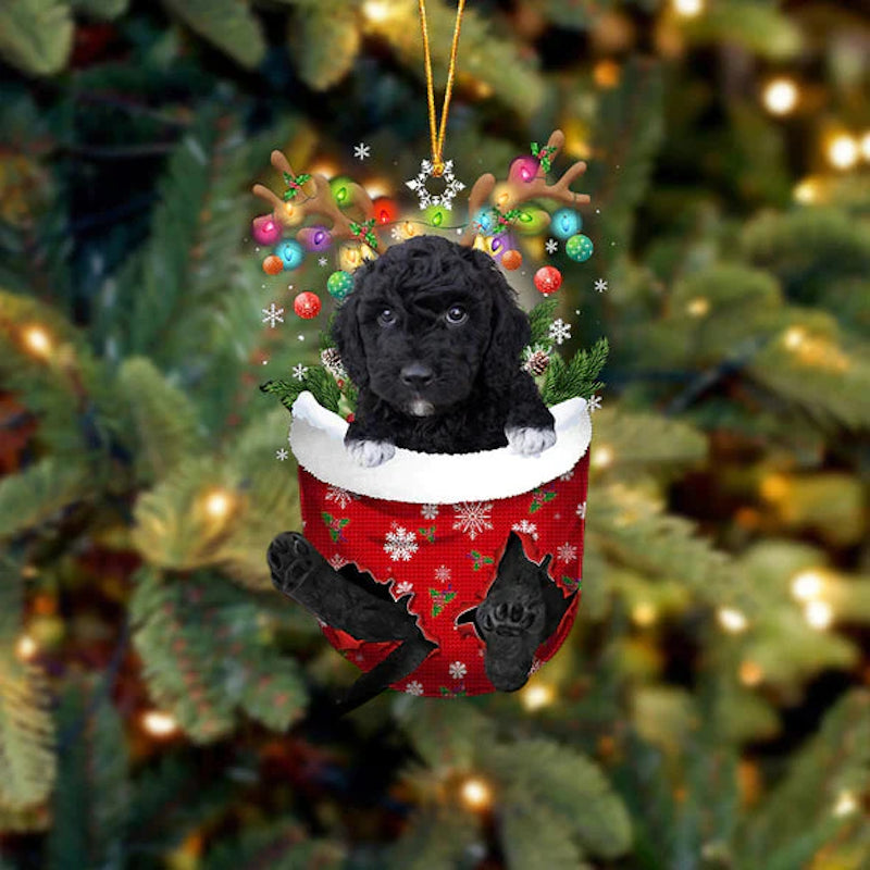 Goldendoodle In Snow Pocket Christmas Ornament SP002