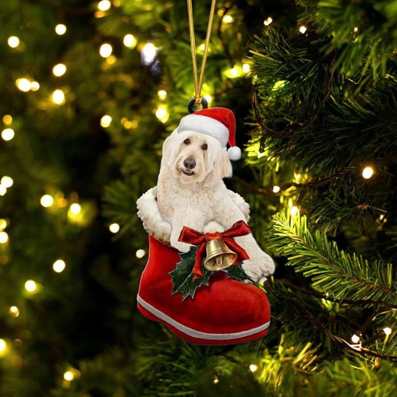 Goldendoodle In Santa Boot Christmas Hanging Ornament SB003