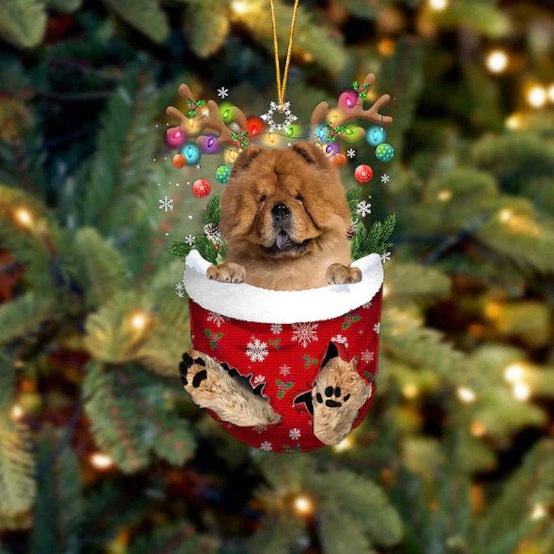 Chow Chow In Snow Pocket Christmas Ornament SP231