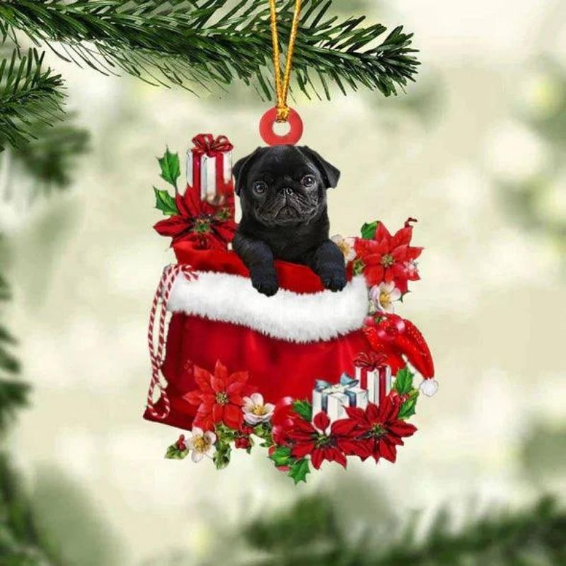 Pug In Santa Boot Christmas Hanging Ornament SB027