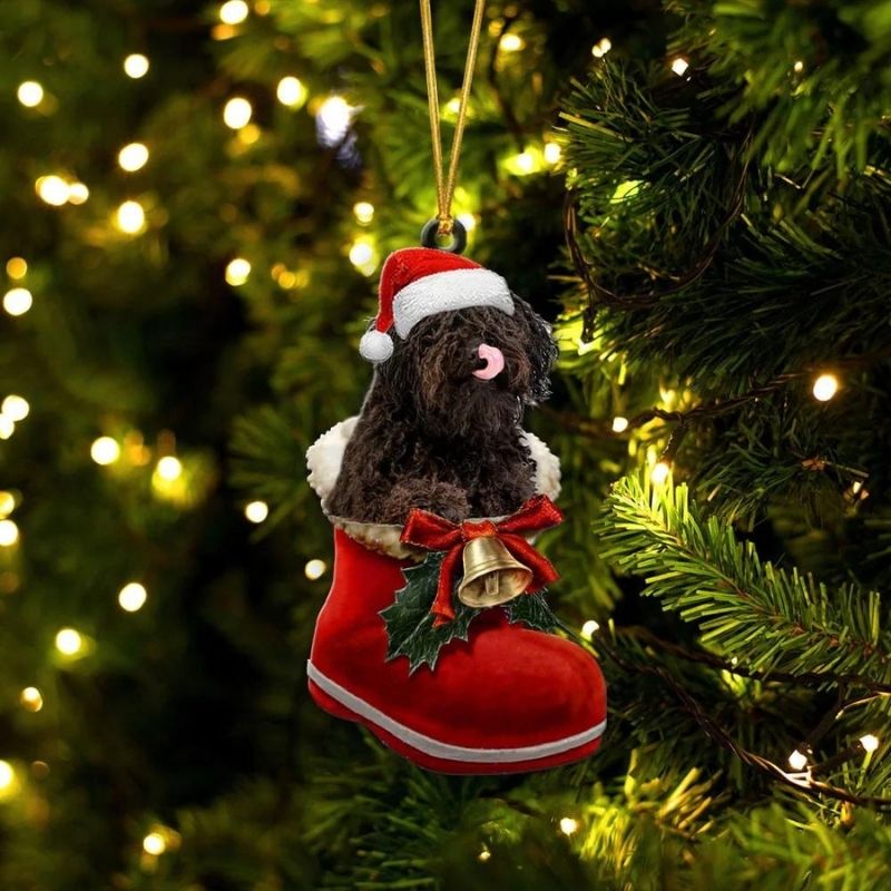 Pumi Dog In Santa Boot Christmas Hanging Ornament SB149