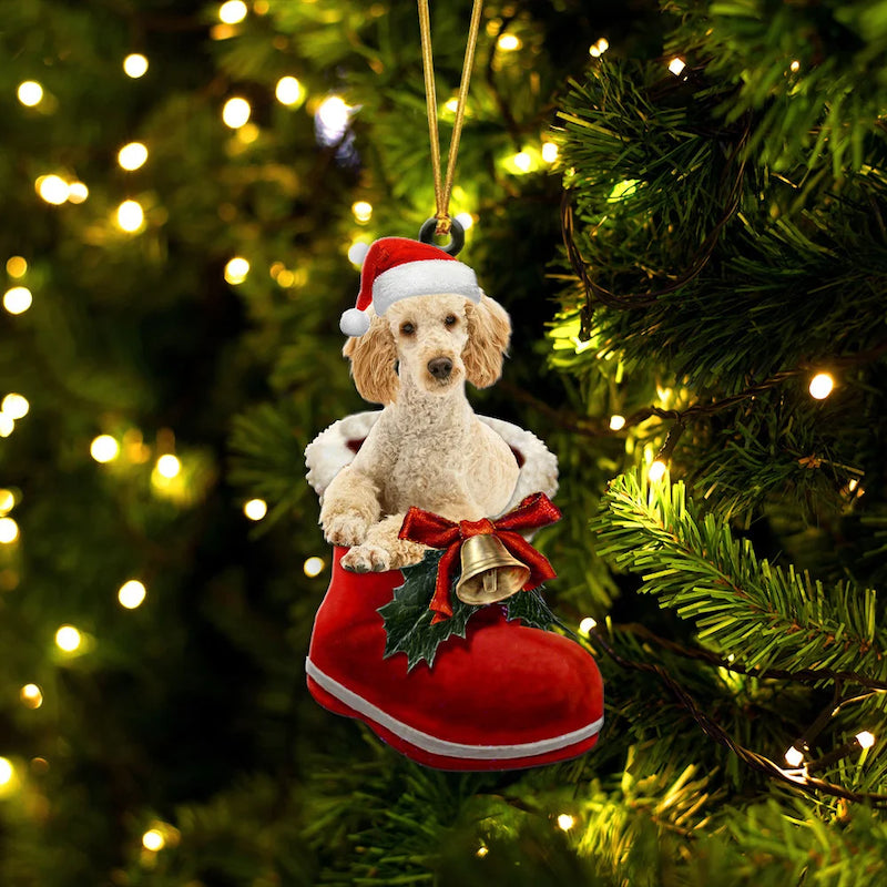 Poodle In Santa Boot Christmas Hanging Ornament SB090