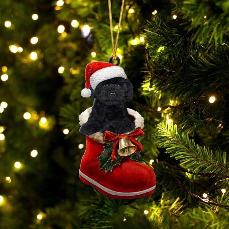 Poodle Black In Santa Boot Christmas Hanging Ornament SB137