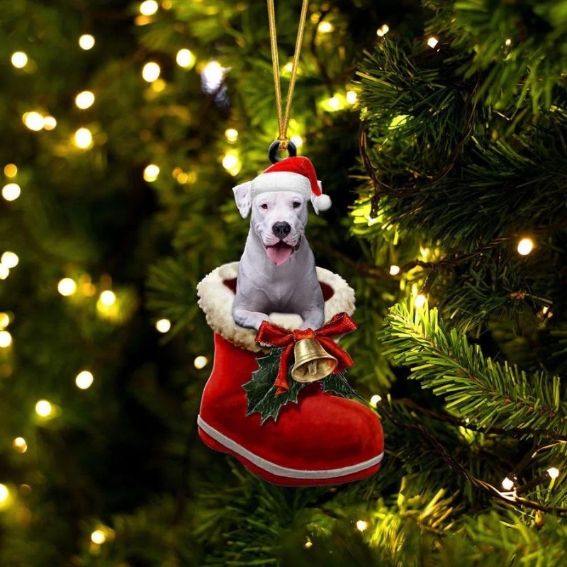 Dogo Argentino In Santa Boot Christmas Hanging Ornament SB100