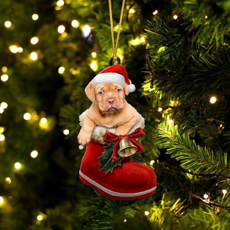 Dogue De Bordeaux In Santa Boot Christmas Hanging Ornament SB170
