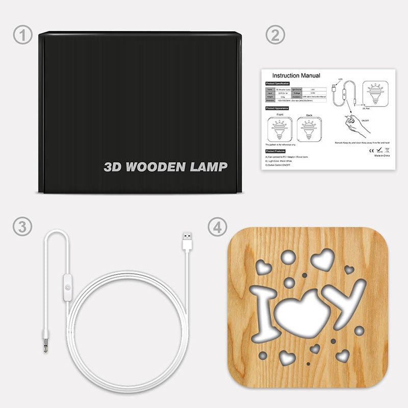 - Product accessories: Wooden night light + 1 USB cable + 1 manual + 1 (color box packaging)