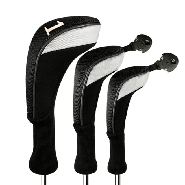 Golf Paradise Classic Wood Clubhead Covers (Black) (One Driver, One Fairway Wood, One Hybrid)
