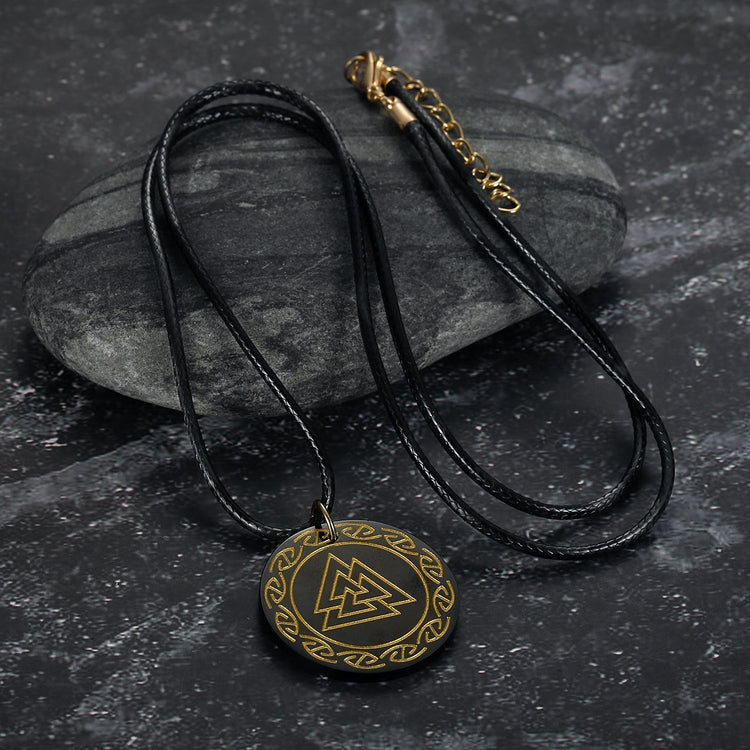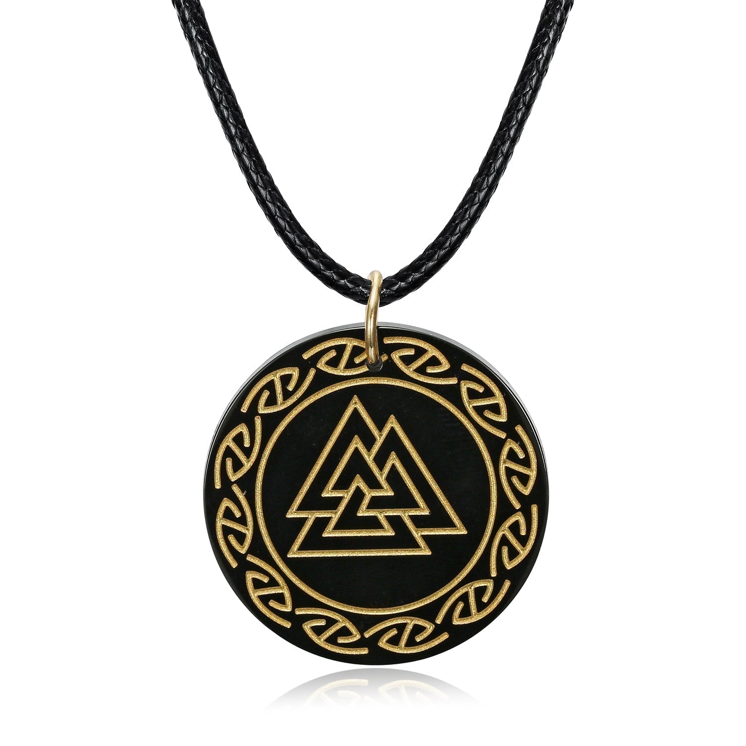 Nordic Pride Circular Horn Valknut Symbol Pendant & Chain