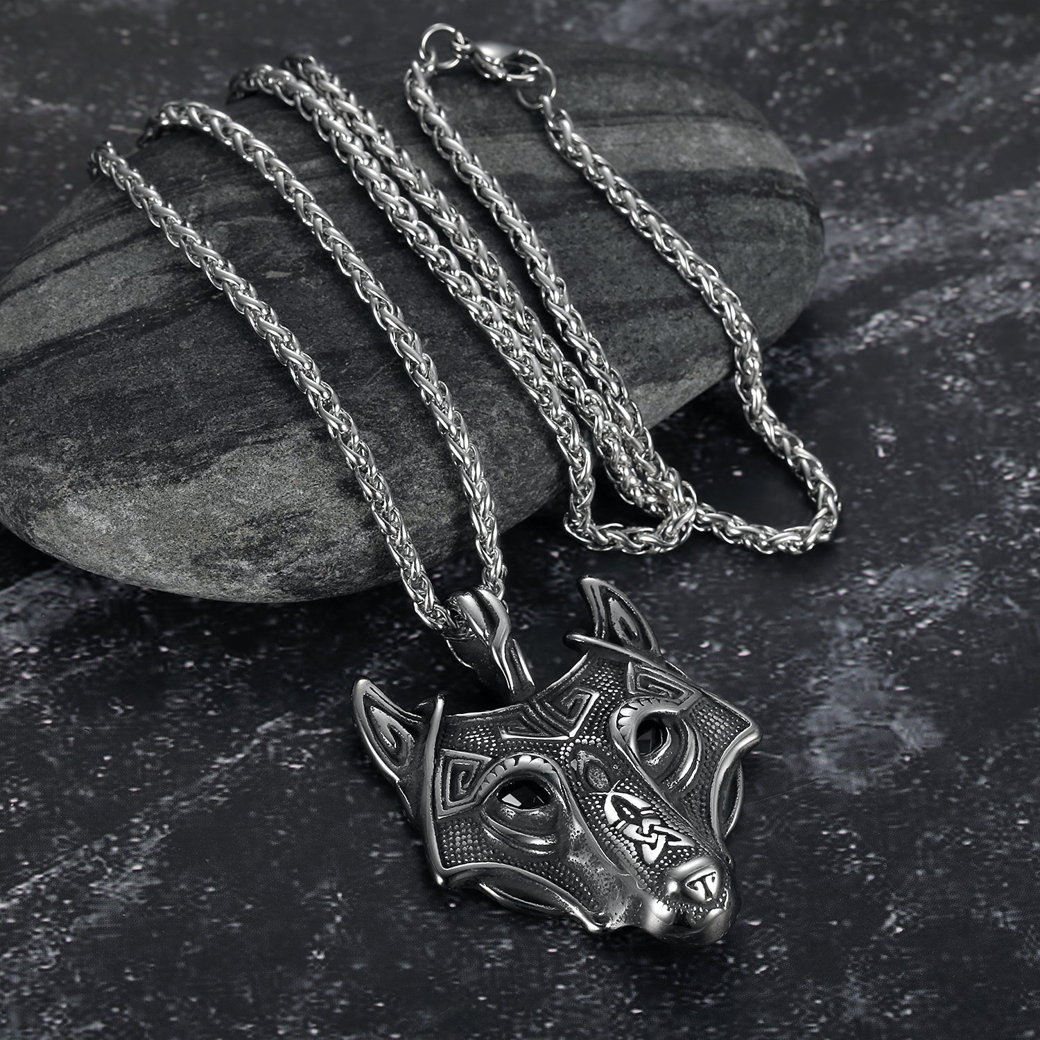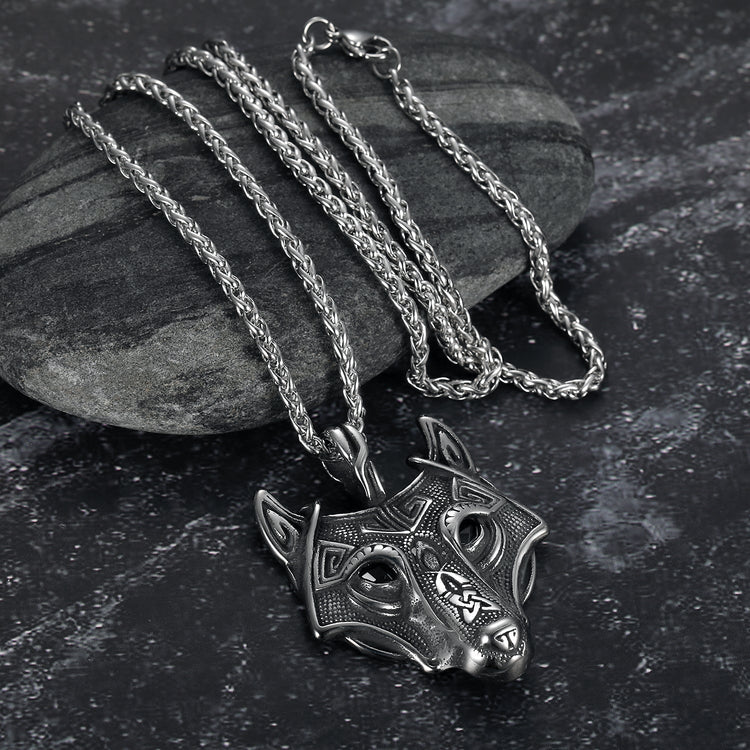 Nordic Pride Grey Wolf Head Nordic Pendant - Metal Chain