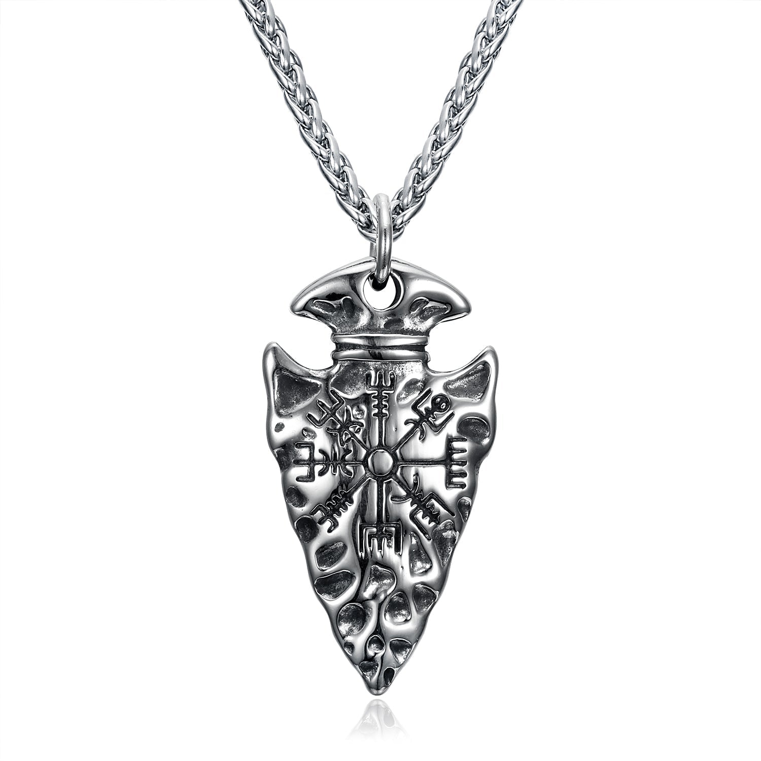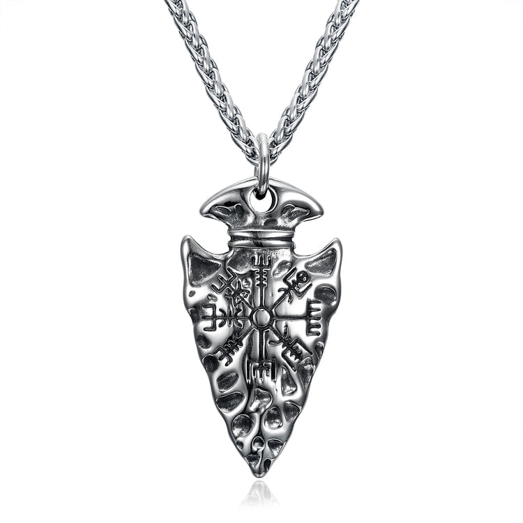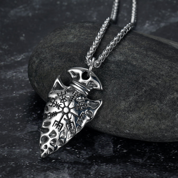 Nordic Pride Handcrafted Stainless Steel Nordic Spear Head Pendant with Helm of Terror