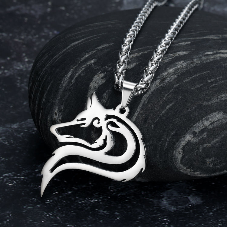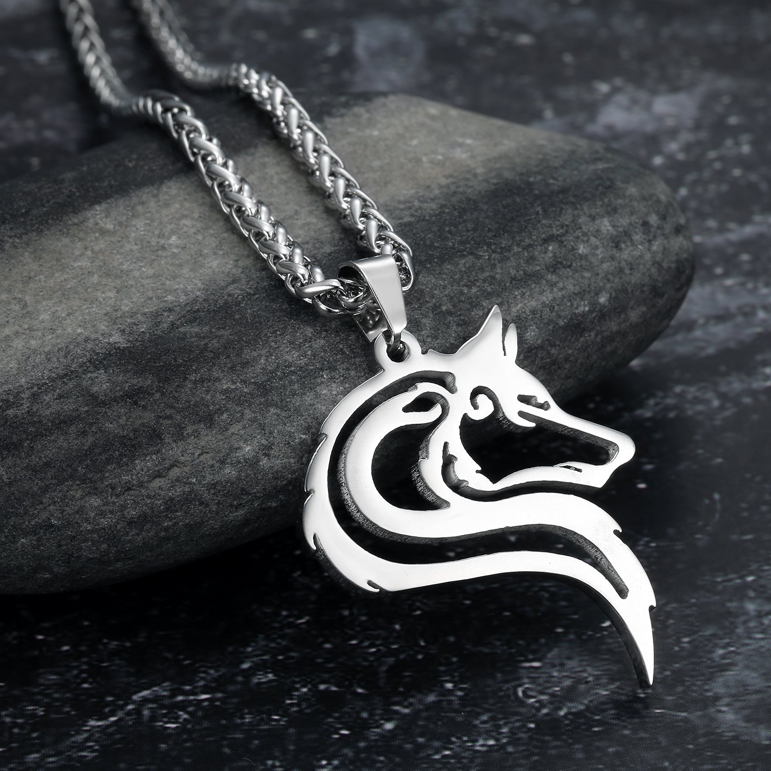 Nordic Pride Handcrafted Stainless Steel Odin's Grey Wolf Head Pendant