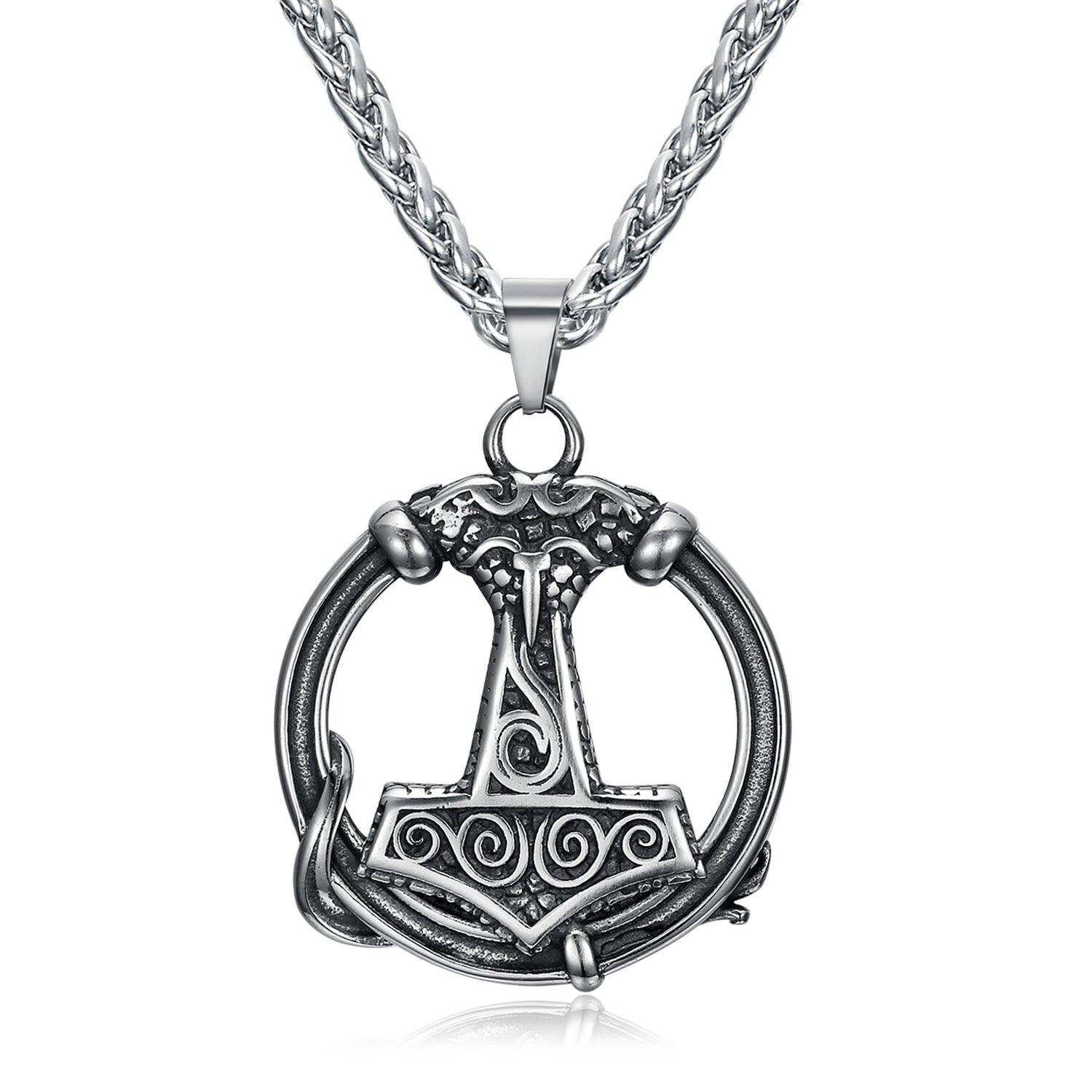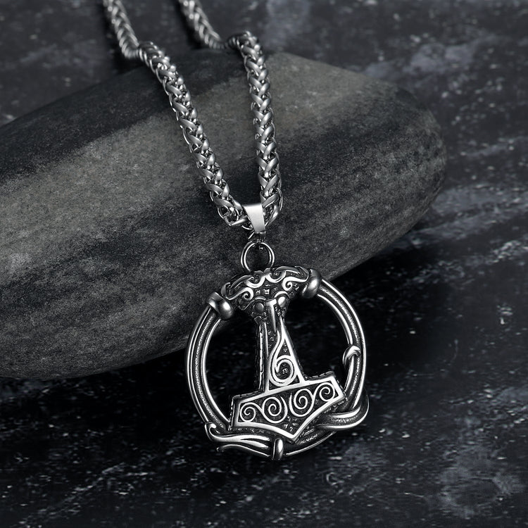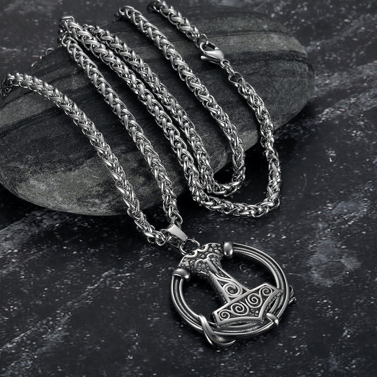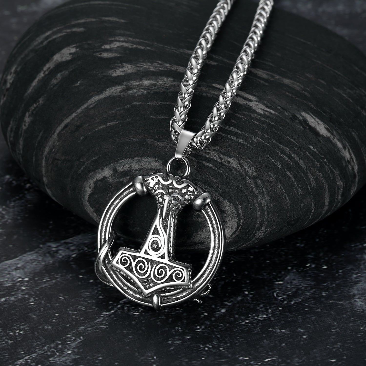 Nordic Pride Handcrafted Stainless Steel Thor's Gavel Circular Pendant & Chain