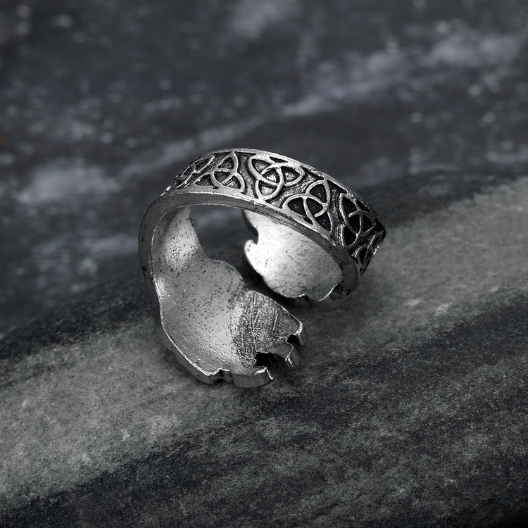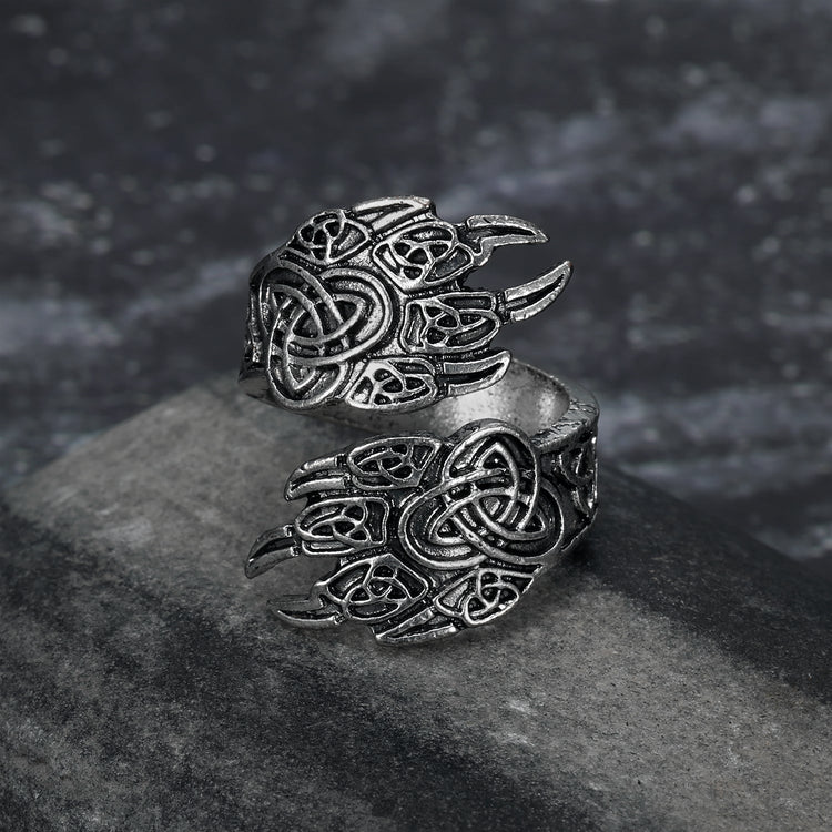 Nordic Pride Handcrafted Stainless Steel Adjustable Bear Paw Ring