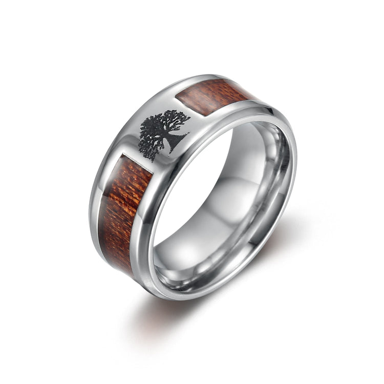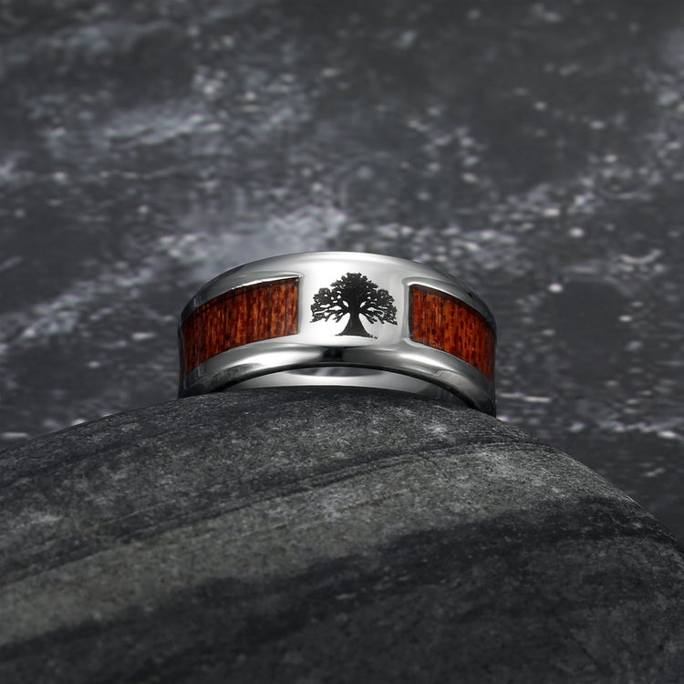 Nordic Pride Handcrafted Stainless Steel Celtic Tree of Life and Wood Inset Wedding Ring