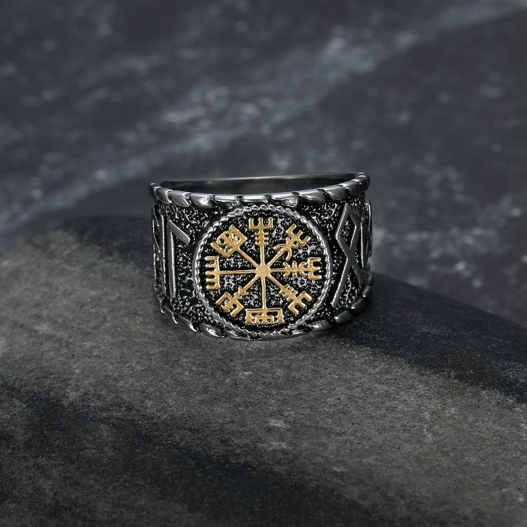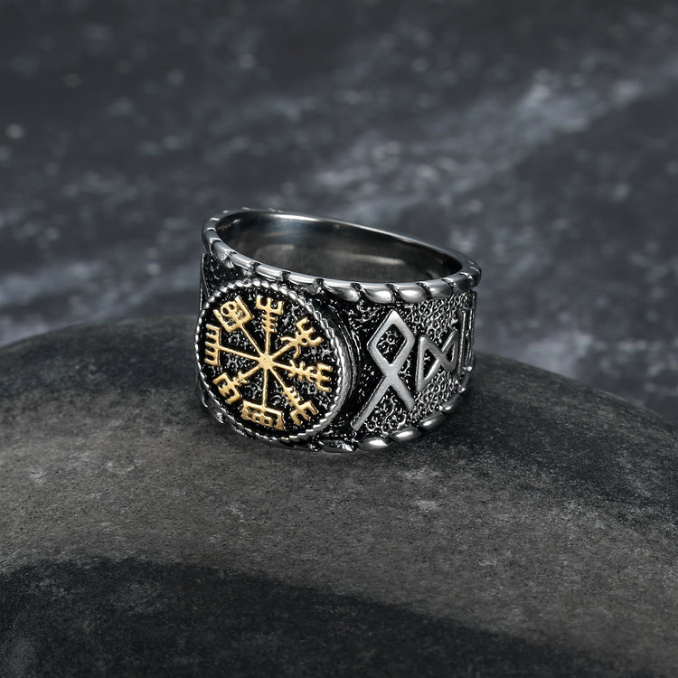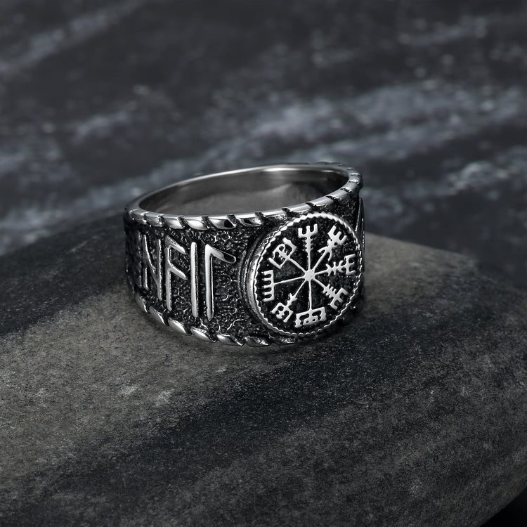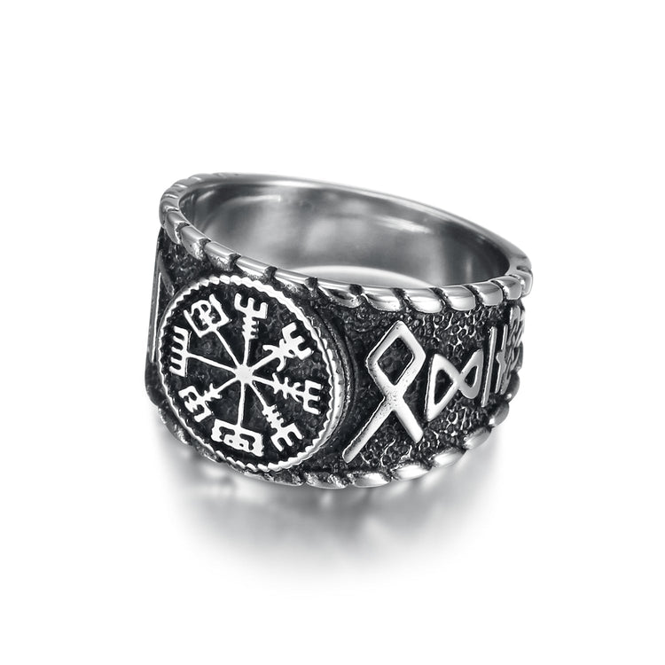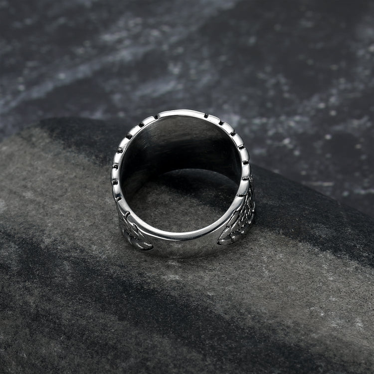 Nordic Pride Handcrafted Stainless Steel Icelandic Stave and Runes Ring