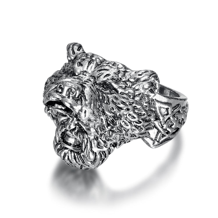 Nordic Pride Handcrafted Stainless Steel Odin and Grey Wolf Ring