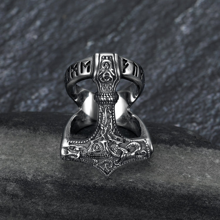 Nordic Pride Handcrafted Stainless Steel Open Thor's Gavel Ring