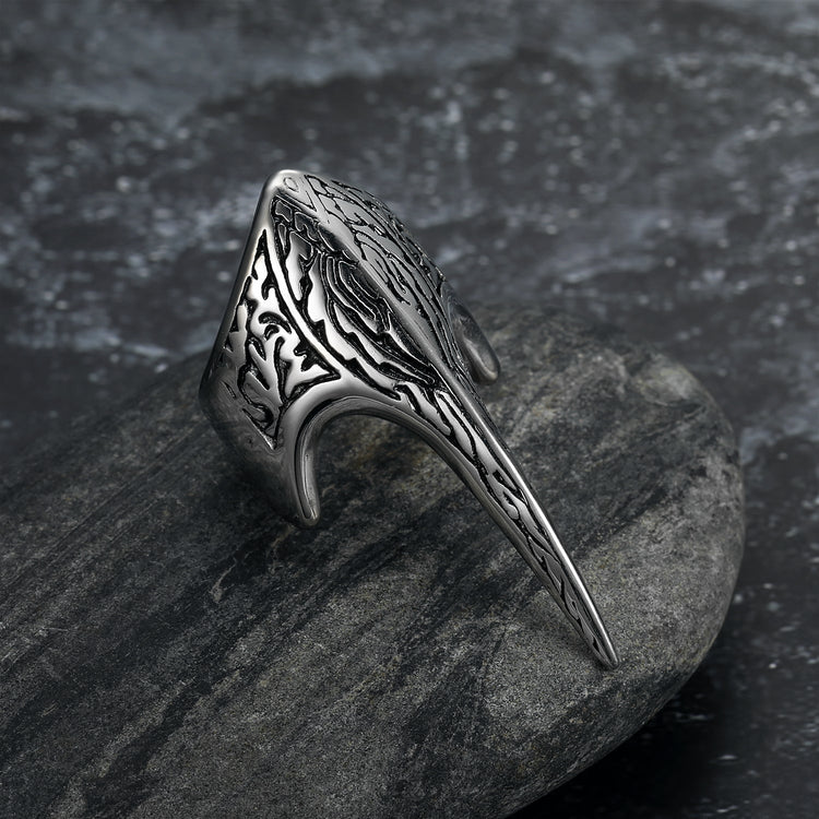 Nordic Pride Handcrafted Stainless Steel Stylized Raven Skull Ring