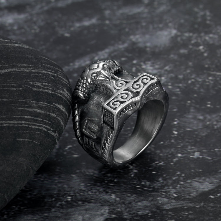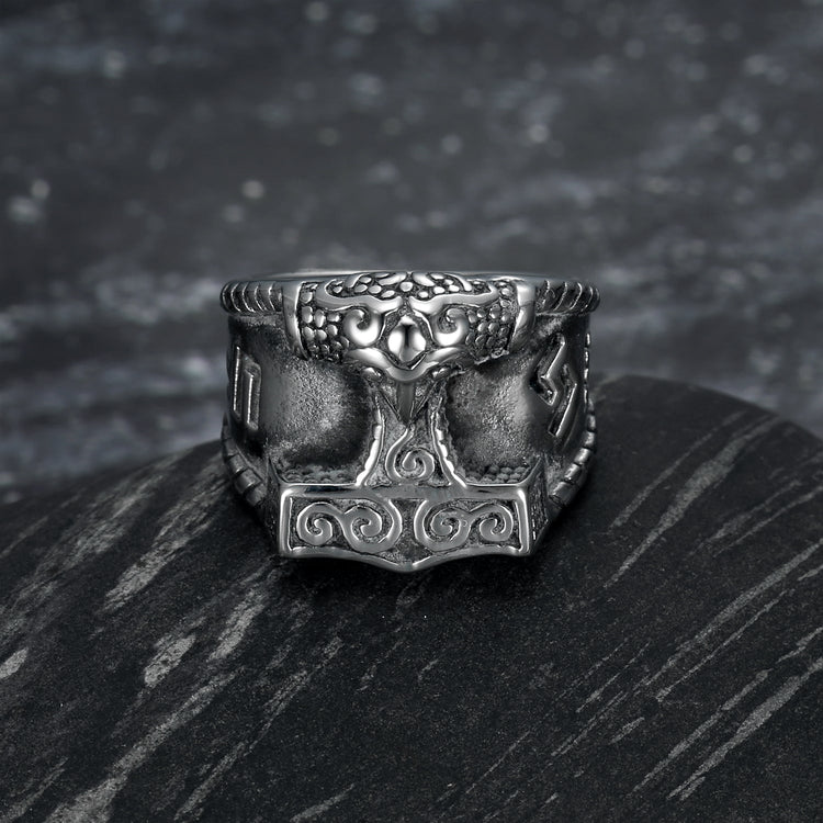 Nordic Pride Handcrafted Stainless Steel Thor's Gavel and Rune Ring