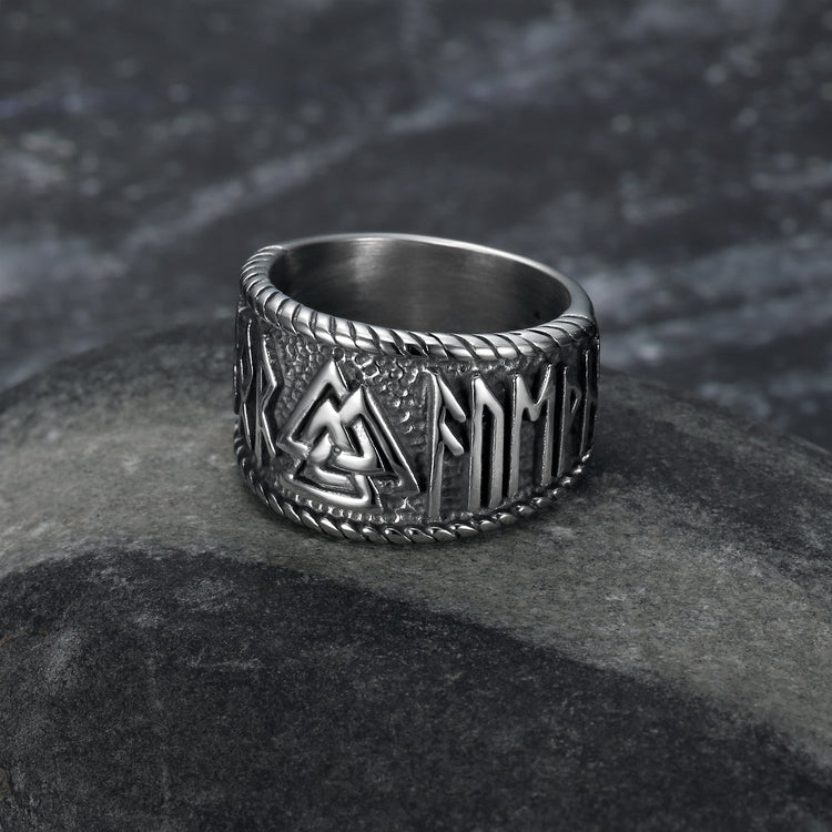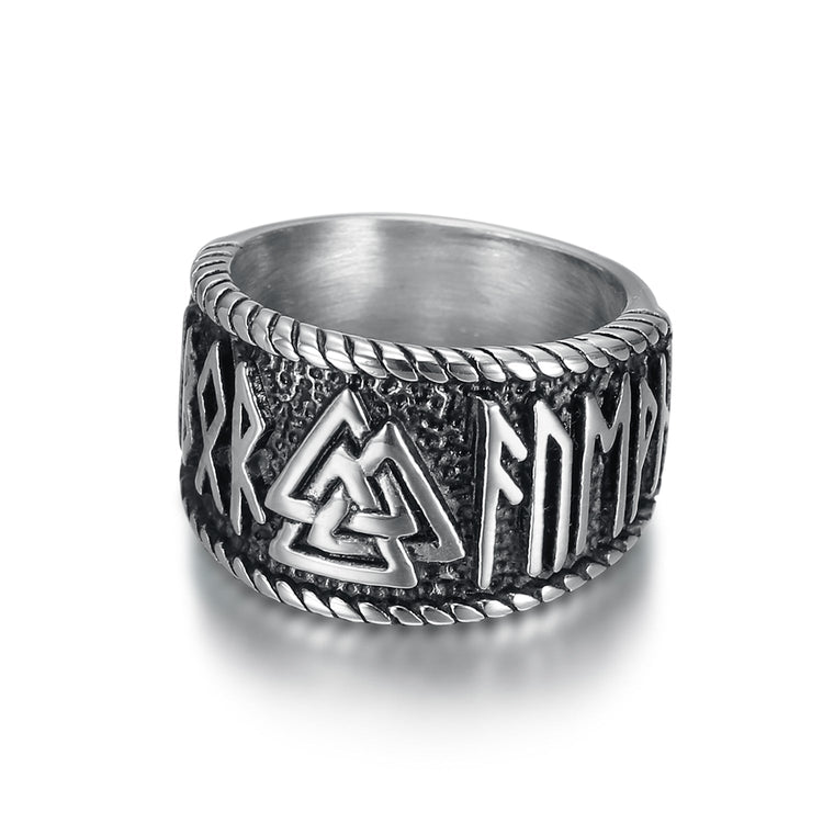 Nordic Pride Handcrafted Stainless Steel Valknut Symbol and Rune Ring