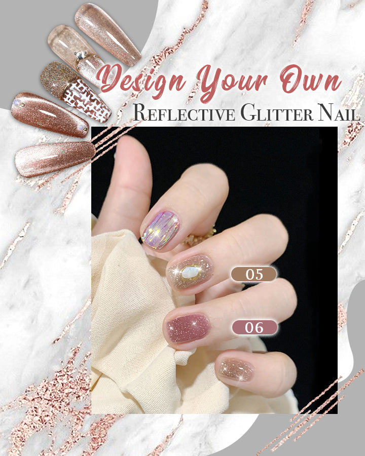 Apply one coat of Reflective Glitter UV Nail Polish.
