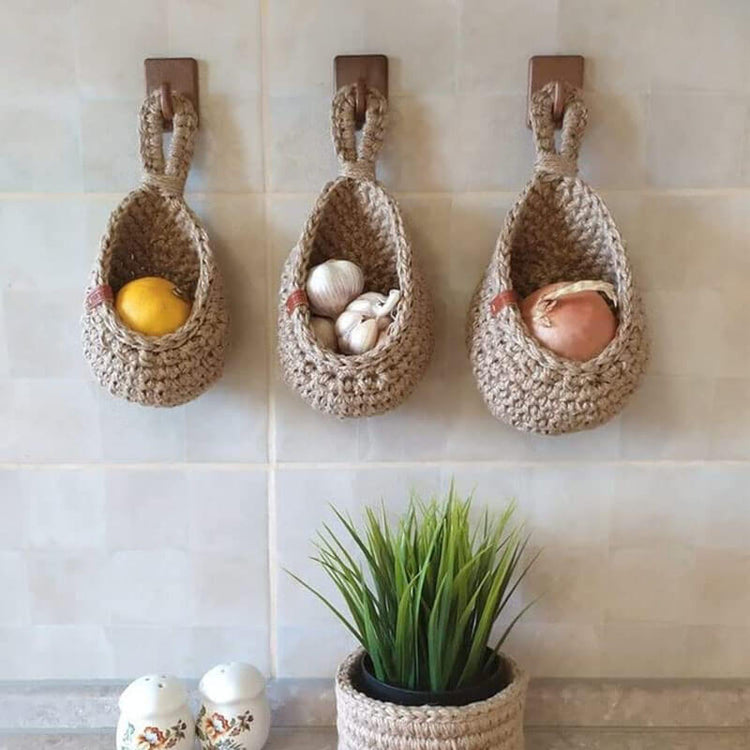 100% Handmade eco-friendly crochet baskets. The hanging fruit basket is made of high-quality cotton rope, which is wear-resistant and not easy to break. It can be used for a long time and is durable.