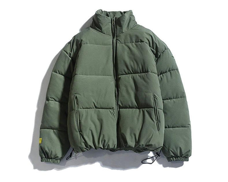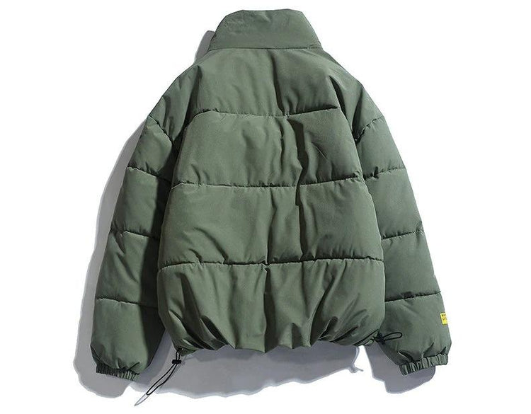 This versatile puffer jacket infuses contemporary street fashion into a winter staple.