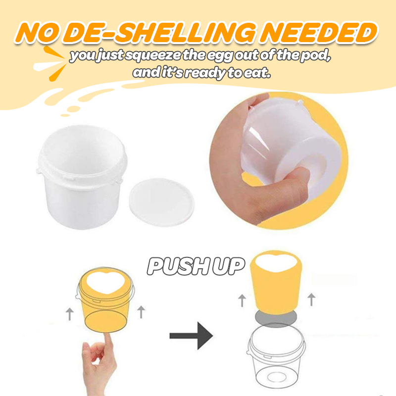 • NO DE-SHELLING NEEDED. It’s de-shelling free, you just squeeze the egg out of the pod, and it’s ready to eat.