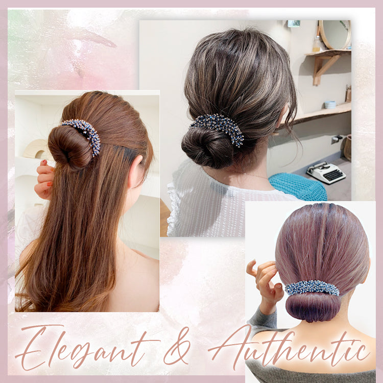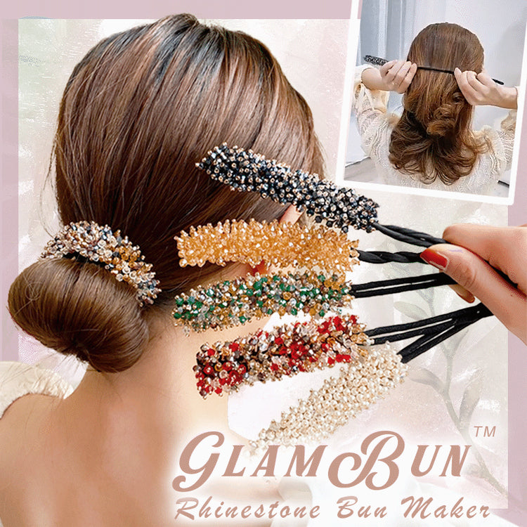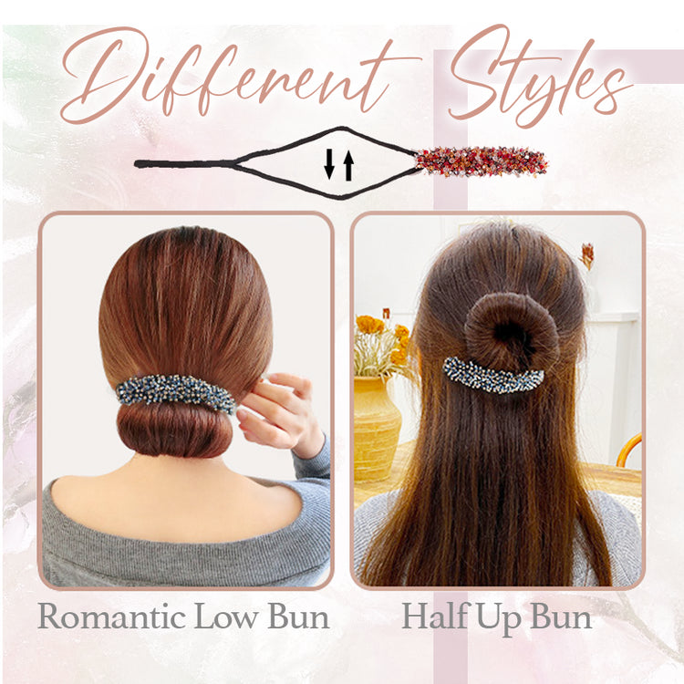 - GLAMOROUS LOOK. This hair accessory combines sparkling rhinestone crystal with the bendable bun shaper that gives off the sense of elegance and glamor.