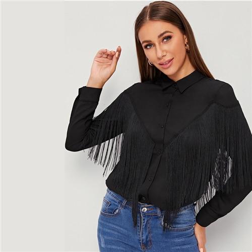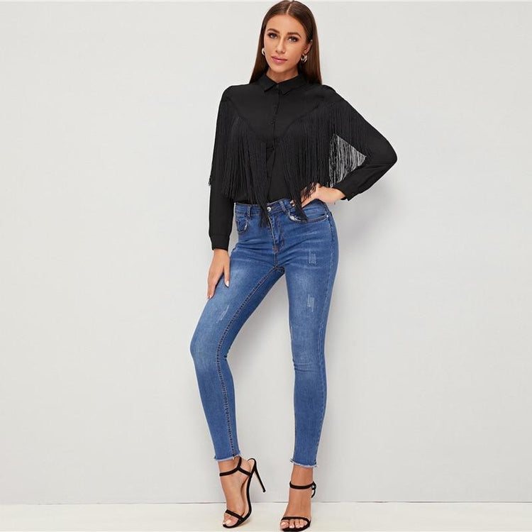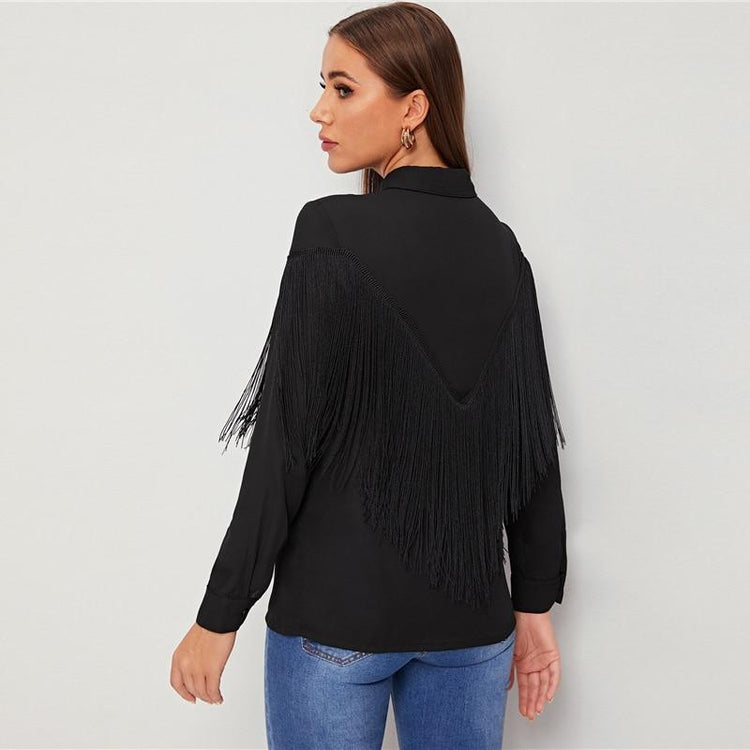 Harriet Chevron Fringe Blouse - Black
