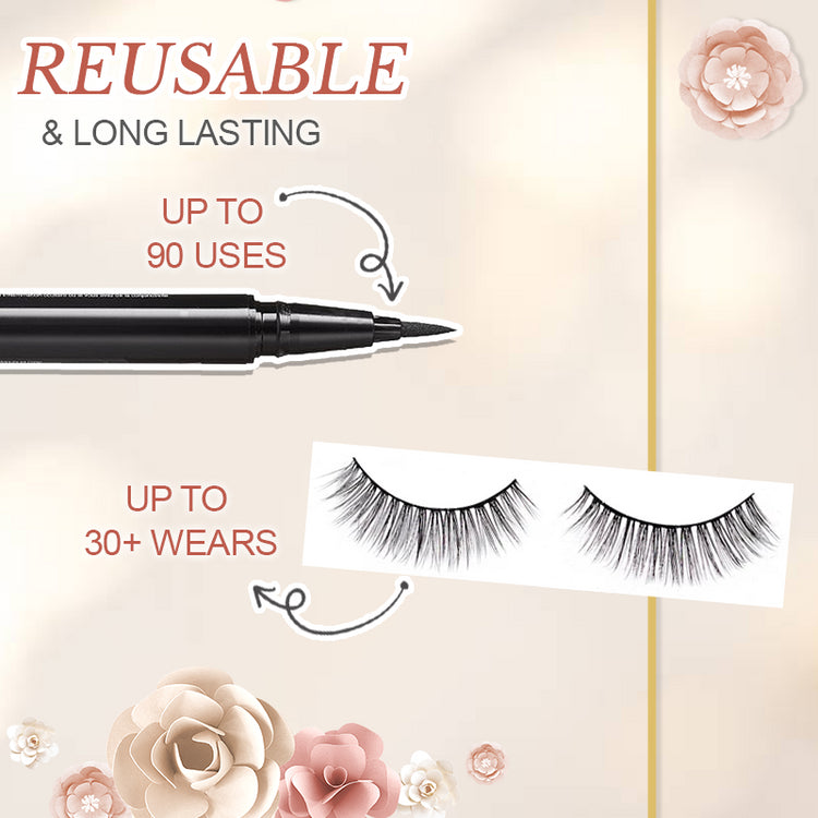 This reusable kit contains an adhesive eyeliner that ensures effortless false lashes application without the use of any glue and magnets.