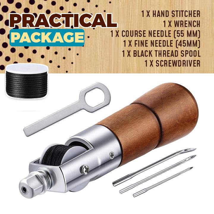 Leather Sewing Awl Hand Stitcher Set is a heavy duty hand sewing tool that can sew any heavy material such as canvas, leather, tarp, or sails. Sew a perfect lock stitch every time!