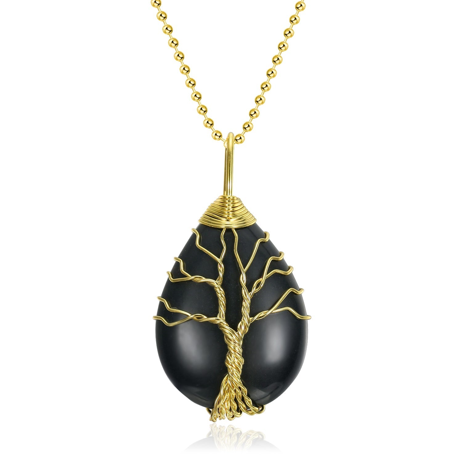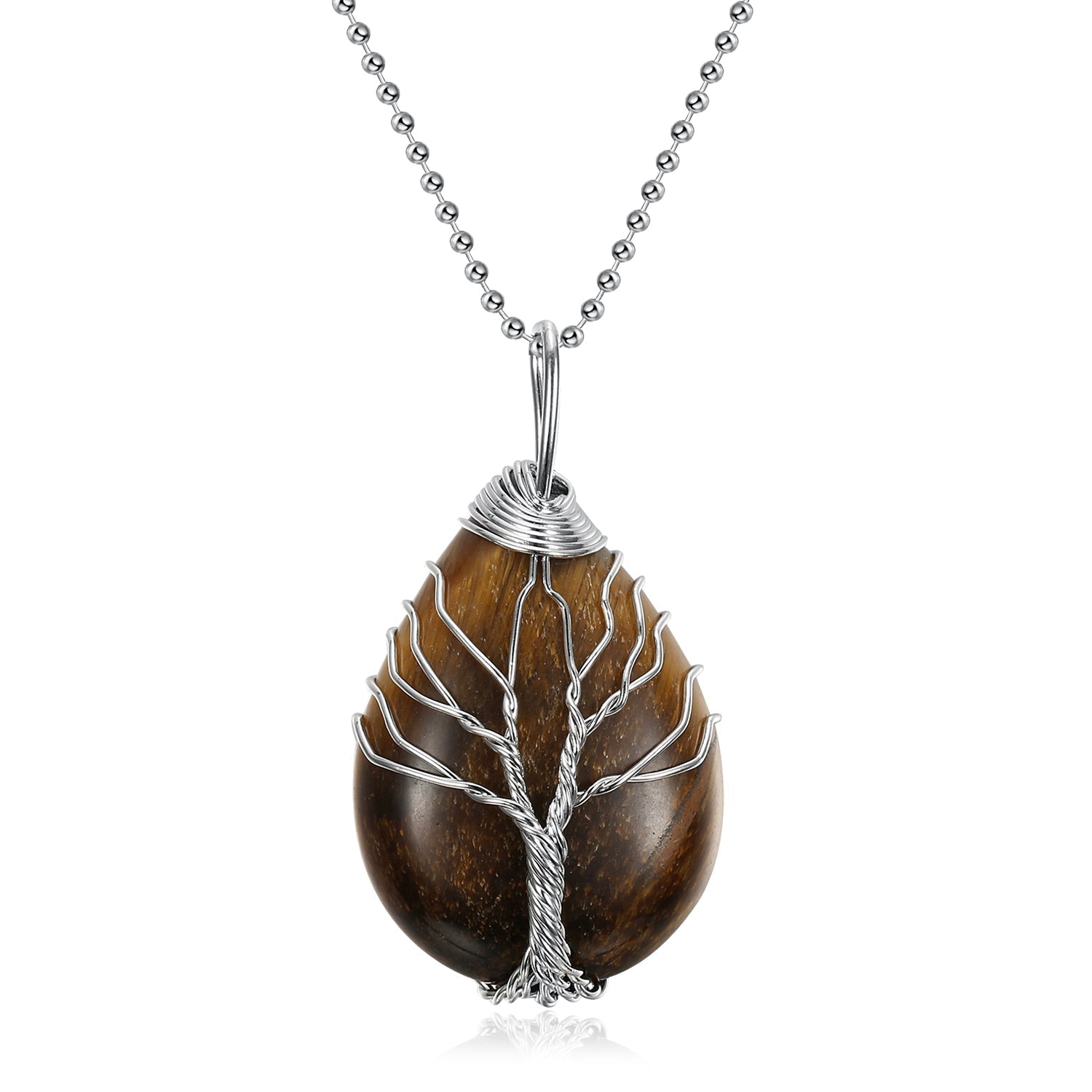 [LIMITED EDITION] Celtic Tree of Life Pendant & Chain on Teardrop Semi-Precious Stone