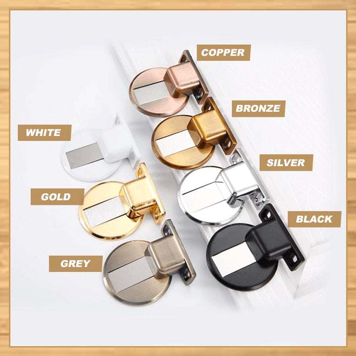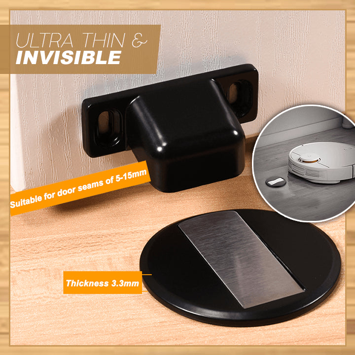 - Invisible magnetic door stop. The magnetic catching force helps holding the door stably. This door stop set will conveniently hold your door open and protect your walls from damage. Mini and compact size concealed door stopper offers an elegance of your door.