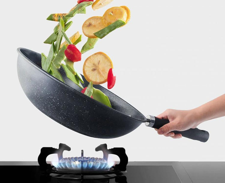 The coating our oriental cast iron wok is infused with particles that not only give it the toughness and long-lasting quality you want in your cooking companion, but also allows for improved heating and better searing.