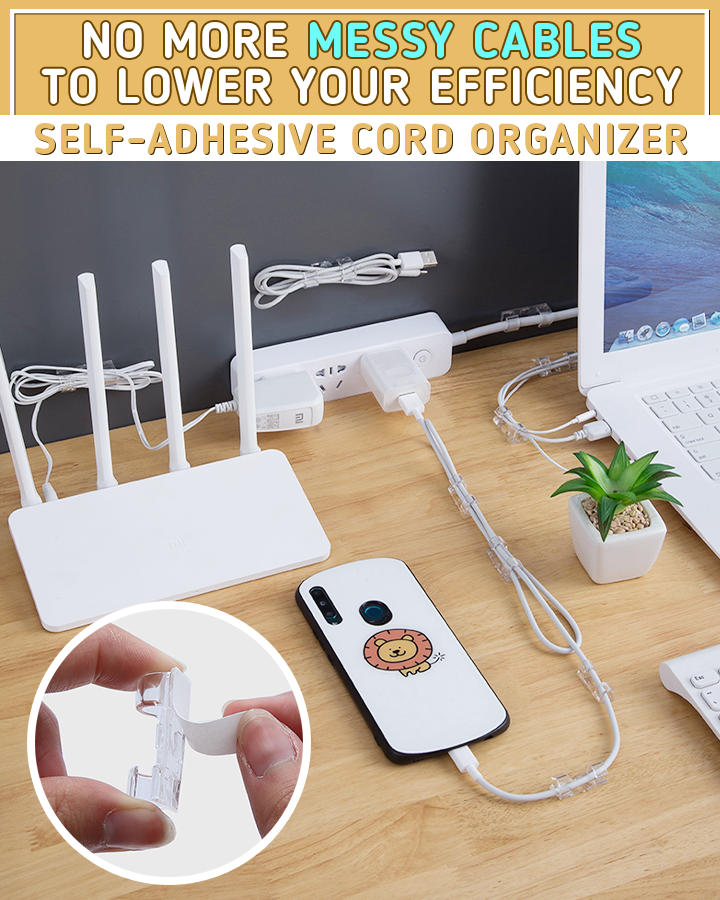 Self-Adhesive Cord Organizer neatly clips on cables and wires to avoid tangling and cable damages. Your ultimate organizer for USB cables, wires, mouse cables or earphone cables and more!