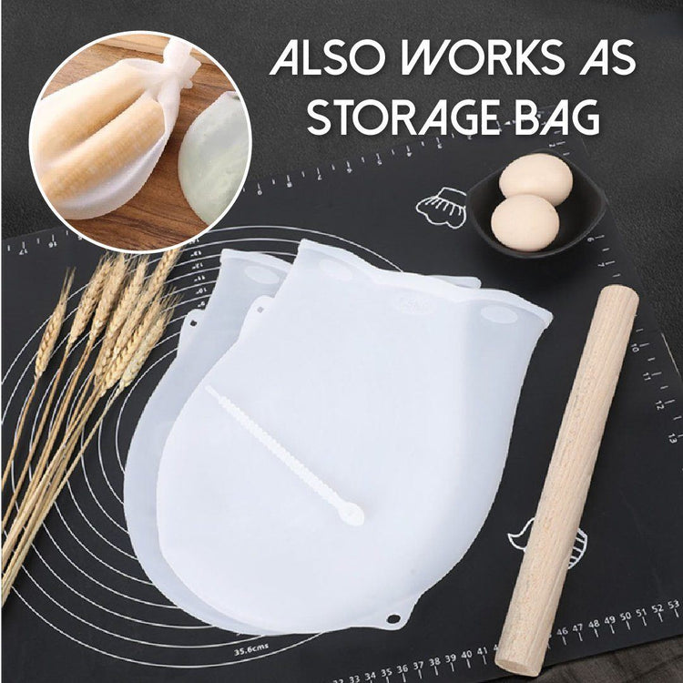 Just add the ingredients such as flour, water, eggs mix all together, tie up the bag and start kneading.