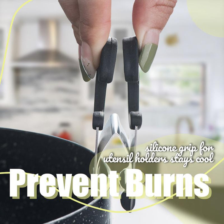 • Anti-scalding. Designed with silicone grip material, this utensil holders stays cool and prevents utensil handles from turning hot.