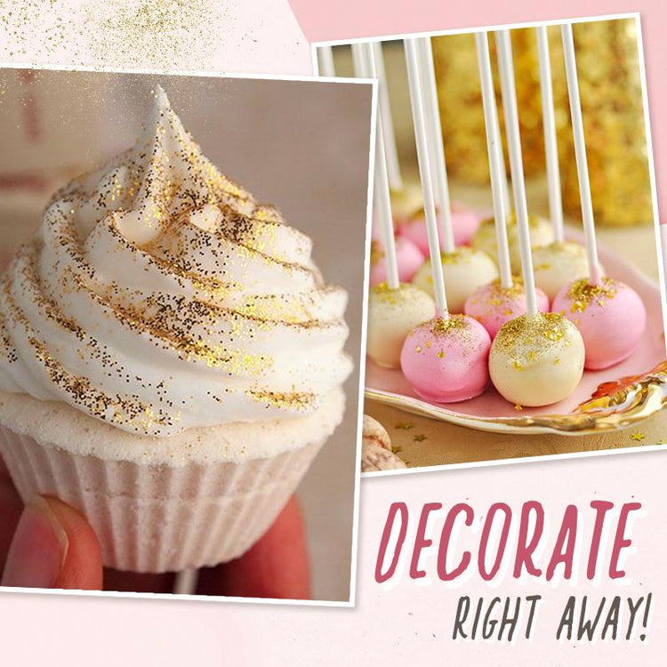 The handy decorating tool lets you quickly and easily apply paint and glitter to cakes, cupcakes, chocolates and other desserts. It gives you full control over pressure with which your spray is applied. Perfect for beginner cake decorators and seasoned professionals.